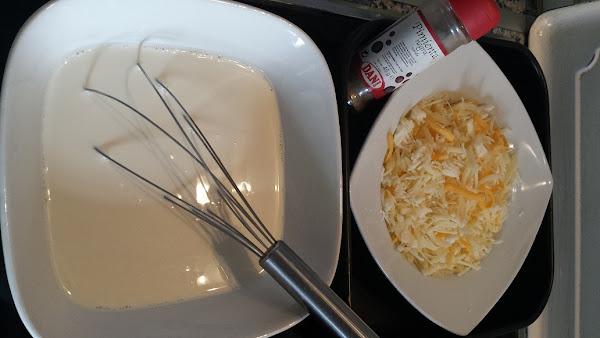 Mezclamos la nata (crema de leche) y el huevo y se lo añadimos a las patatas.