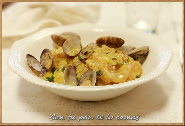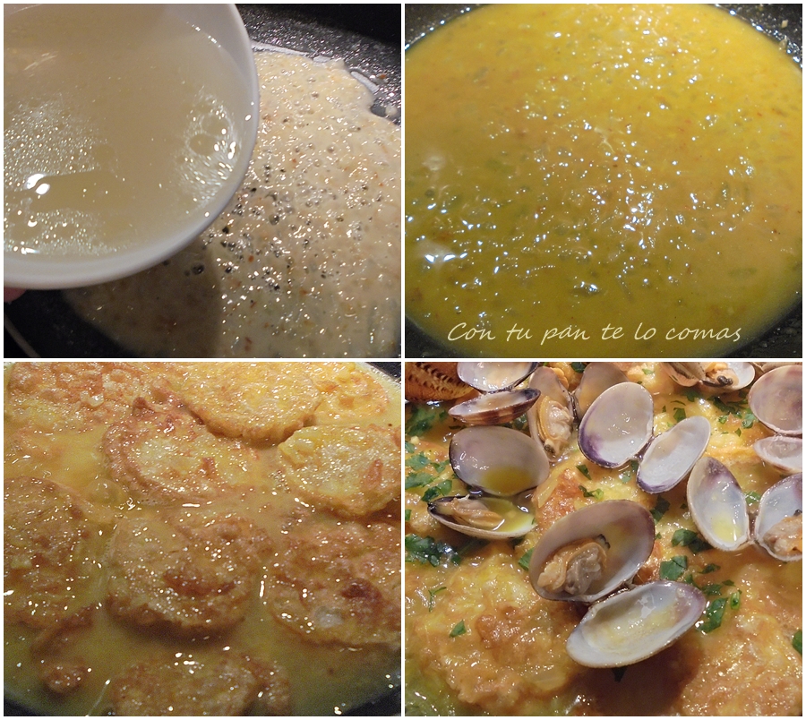 Un guiso tan extraordinario a base de simples patatas, lo convertimos en un plato más sofisticado y marinero añadiendo almejas, aunque también podemos encontrar versiones con jamón, langostinos, pescado... pero la base es la misma, un delicioso y sencillo guiso de patatas rebozadas y fritas que se terminan de cocer en una salsa.