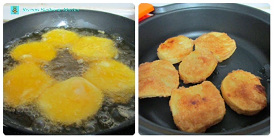 3. Ponemos una sartén con abundante aceite y freímos las patatas, sacándolas y las vamos poniendo en una nueva sartén sin aceite.