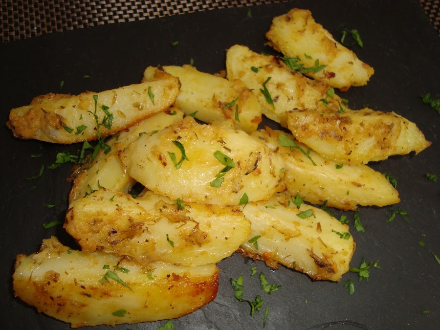 Lavar las patatas y cortarlas en cuartos, dejarlas con la piel.