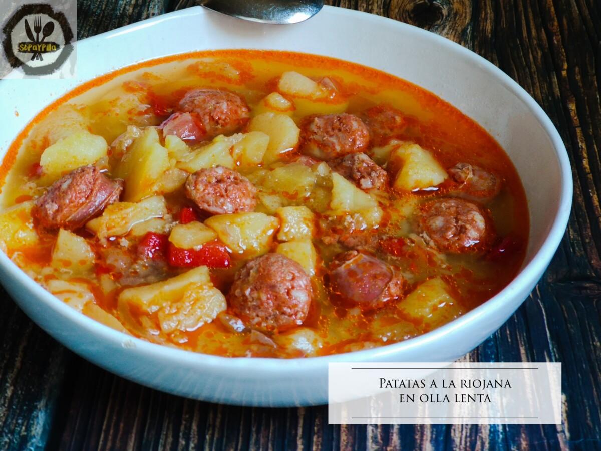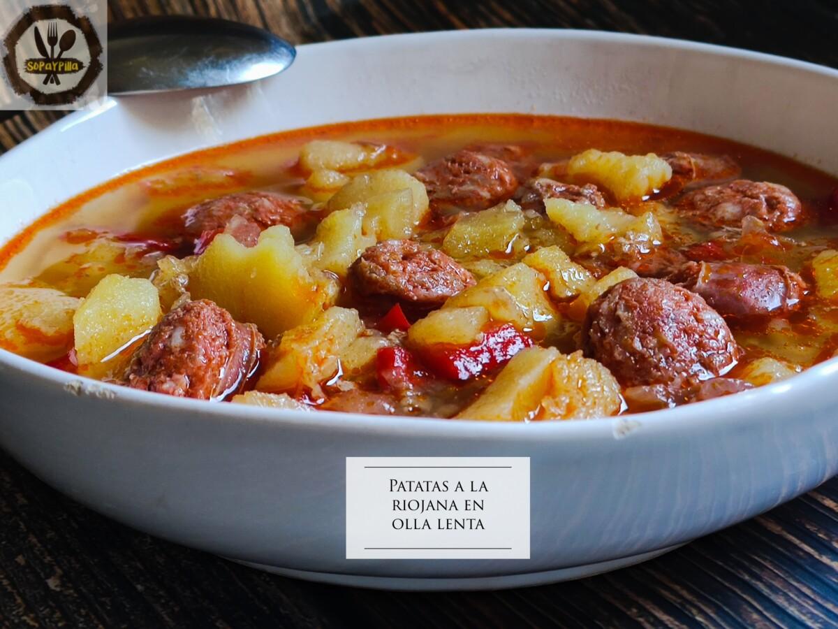 Cuando vamos ajetreados no hay nada mejor que esas recetas que lo metes todo en la olla y lo dejas ahí cociéndose lentamente, hasta que le puedes dar un vistazo y puedes comprobar (ya de antemano por la olorcita) que tienes la comida hecha y esperando a ser servida, como estas patatas a la riojana hechas en la crockpott…quién da más?
