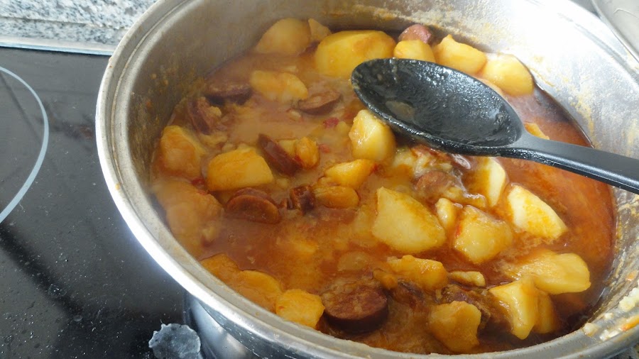 Para comenzar con energía la semana: unas patatas a la "riojana", preparadas con chorizo "asturiano" y cocinadas por una "andaluza"... una mezcla que nos da como resultado un plato muy rico.