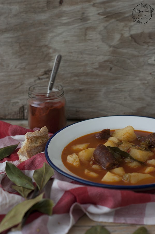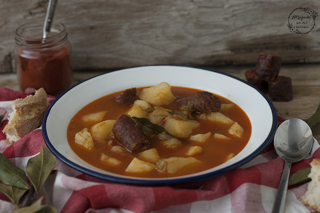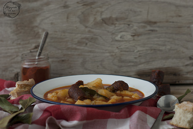 Hoy un guiso típico de la región de La Rioja y Álava. Delicioso para esos días de frío que aún puedan quedar, e imprescindible para aquellos que no renuncian a un plato caliente ni en días de más calor. Se trata de un plato de ingredientes básicos pero que conjuntados y siendo éstos de buena calidad dan lugar a un plato de lujo. En casa era la primera vez que lo preparábamos, pero nos ha gustado tanto que seguro que repetimos con mucha frecuencia.