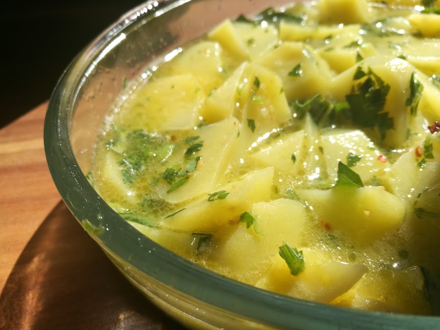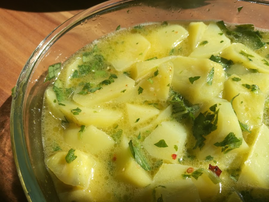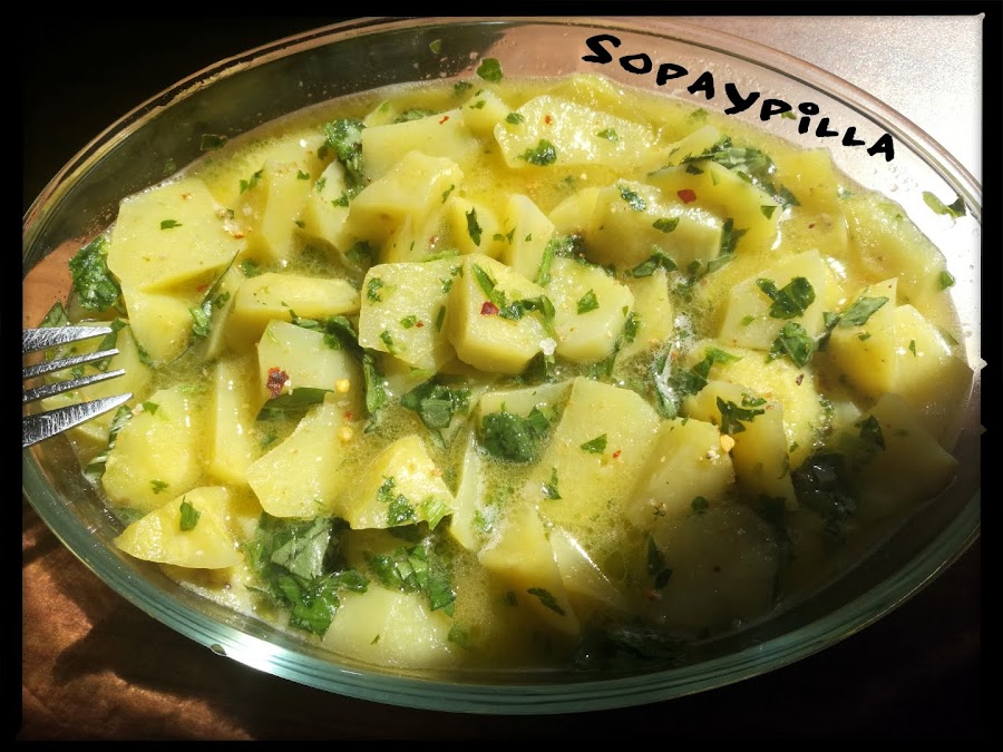 Una guarnición de patatas con un sabor diferente, para cambiar un poco de lo de siempre. Van en salsita o sea que son ideales para mojar pan, y se pueden comer tanto calientes como frías para llevar.