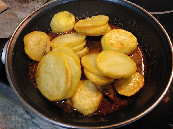 Mover las patatas para que se embadurnen en la salsa.