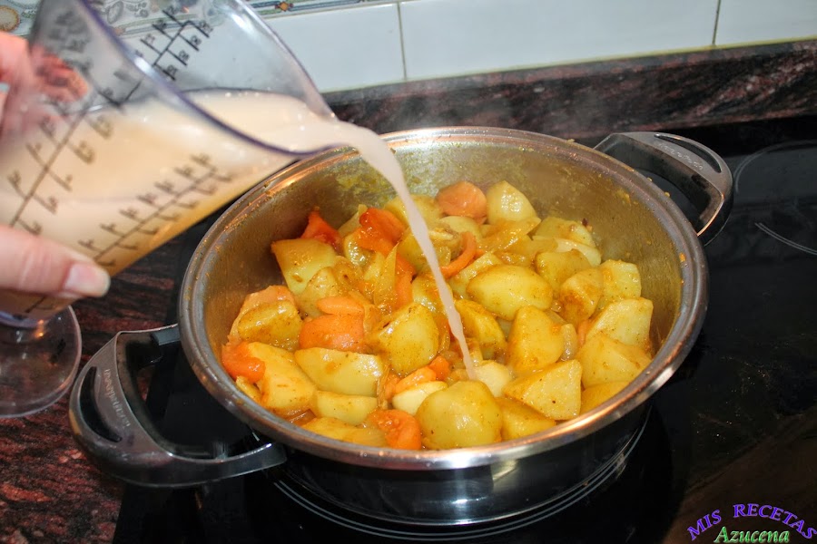 Dejamos que reduzca el caldo y espese con la nata (crema de leche).