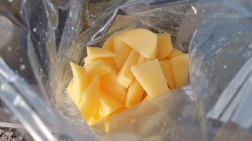 - En una bolsa apta para uso alimentario introducimos los gajos de patata,