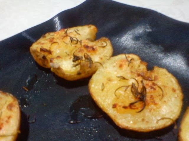 Hacemos unos ligeros cortes y con una cuchara aplastamos las patatas,pero con cuidado que no se rompan.