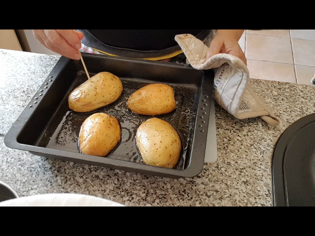 14. Retiramos, comprobamos que las patatas estén blandas con la ayuda de un palillo
