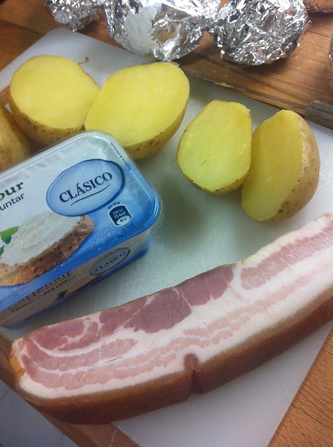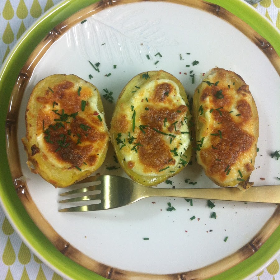Si además te gusta el queso la combinación es de nota. Mirad qué sencillo, con sólo unos pocos ingredientes y el momento vaciado de las patatas que resulta de lo más entretenido.