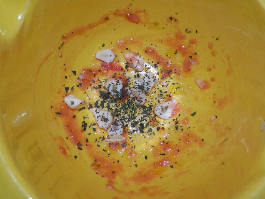 Una vez picados añadimos aceite de oliva.