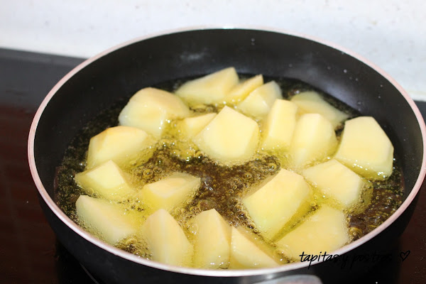 Las freímos en abundante aceite, primero a temperatura media para que se hagan por dentro y al final subimos el fuego para que se doren.
