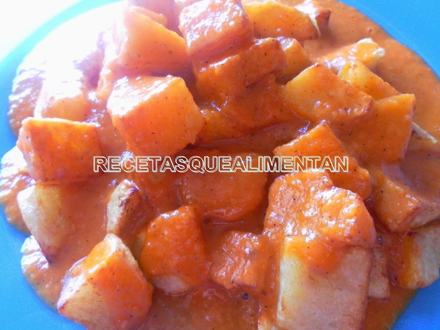 Esperamos unos minutos y las pasamos a una fuente y acompañamos con la salsa brava.