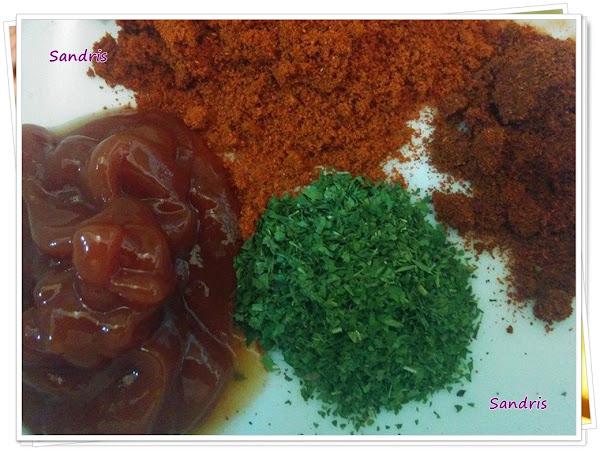 Aceite de olivaSe sofríe bien el tomate tamizado y cuando esté ya casi hecho, le agregamos el ketchup, los pimentones y el orégano. He usado un poco de azúcar para corregir la acidez del tomate. Eso sí, cada uno le da su toque personal con el picante porque si todos pusieran la misma cantidad... algunos sacarían fuego por la boca jejejejeje