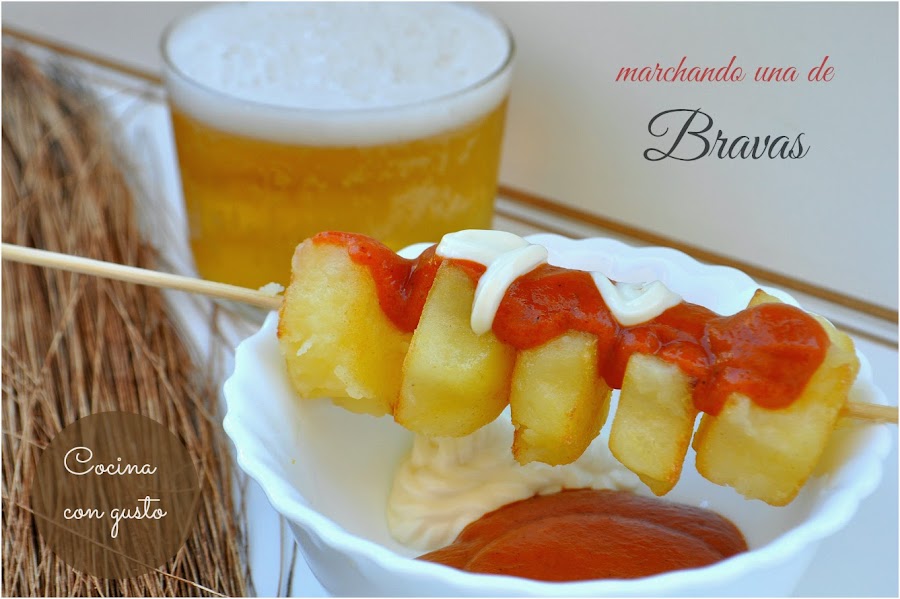 Día 15 y nuevo reto en mi blog. En este caso me proponen unas ricas PATATAS BRAVAS. Al principio pensé "pufff y esto como lo hago yo con lo ricas que hay por ahí" pero luego también pensé "pues anda que no me he comido yo patatas bravas que ni bravas ni ná". Así que decidí que la receta tenía que ser rica rica si no mejor no hacerla. Y creo que no he fallado, al menos "mi jurado" me ha dado un notable alto. Vamos que he tenido que hacer más porque el primer plato les ha sabido a poco.