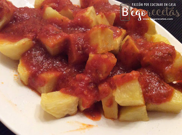 Retiramos, y emplatamos bañando las patatas con la salsa.