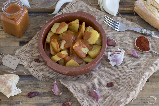 Hoy lunes llega una receta de las tradicionales al blog, las patatas bravas. La salsa brava es una de las más conocidas en nuestro país, que además de añadir a las patatas se le añade a múltiples elaboraciones. No hay una receta única de salsa brava, de hecho hay muchas variantes. Se dice que la original no lleva tomate, aunque en muchos lugares sí que le ponen salsa de tomate. La mía no lo lleva, y he intentado, después de consultar muchas recetas, elaborar la que pienso que más se asemeja a la original, según lo que he leído.