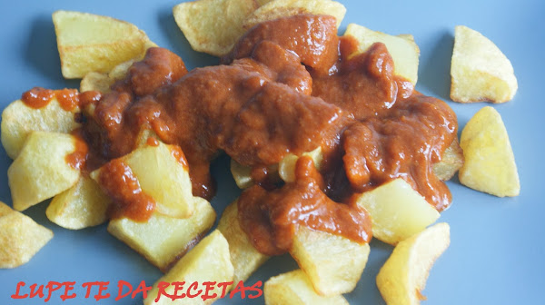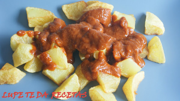 Cocer en agua hirviendo durante 8 minutos, retirar del agua dejar escurrir. Calentar aceite y freír las patatas a fuego fuerte para dorar. Retirar y bañar con la salsa. Comer bien calentito.