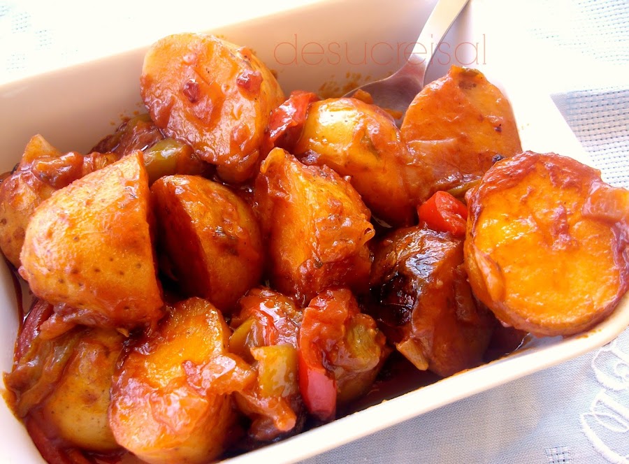 En casa nos ha encantado esta rica receta de patatas, con su punto picante, ...ideal para acompañar tanto un plato de carne,o de pasta, como para tomar como aperitivo..