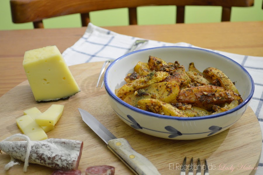 He mantenido más o menos la receta original de Laura, aunque le he dado un toque un poco más picante para seguir el estilo cajún, pese a que estas patatas no tienen nada que ver con la cocina criolla de Lousiana... Parece ser que su origen es mexicano y les pusieron el nombre de cajún simplemente por llevar una mezcla de especias, aunque no son las típicas especias cajún, y supongo que por eso también se las conoce como patatas Deluxe... Curioso ¿verdad?