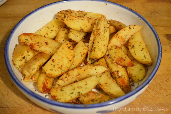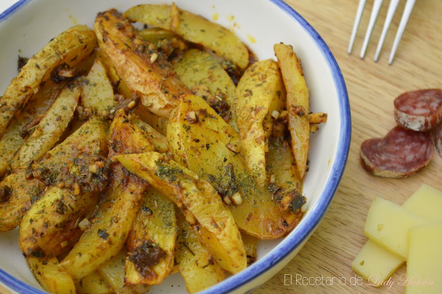 Lo bueno de estas patatas es que las podéis adaptar a lo que os apetezca en el momento y darle un toque más o menos picante, o combinar otras especias que os gusten más porque no hay una receta fija, cada uno le pone lo que le parece. Y os aseguro que os apañarán más de una cena o aperitivo, pero tened cuidado porque son adictivas jeje.