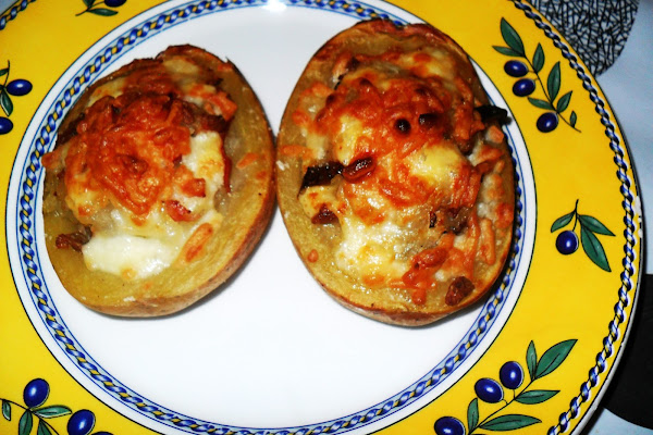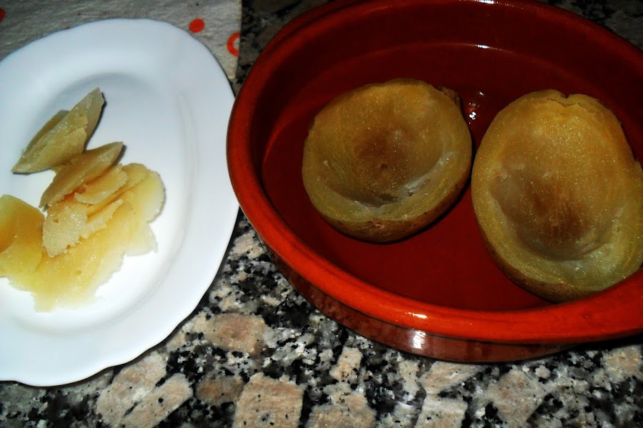 Una vez tierna la patata, la partimos por la mitad y la vaciamos con ayuda de una cuchara