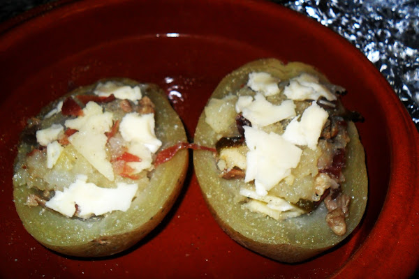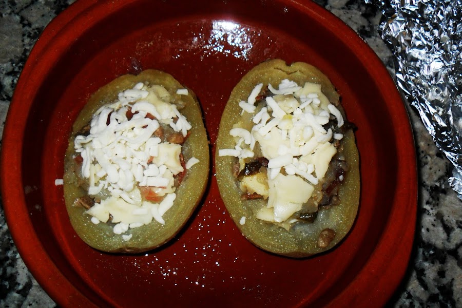 La vamos rellenando cada mitad y ponemos queso por encima.