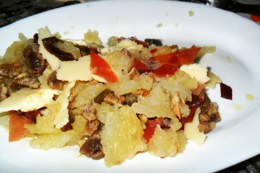 Mezclamos la patata con el sofrito y le añadimos el jamón