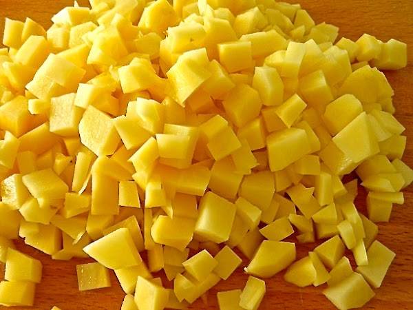 Comienza pelando y picando en dados pequeños la patata o las patatas.