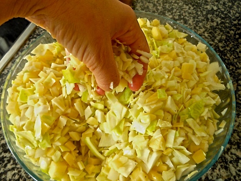 Sigue picando muy fino el medio repollo.