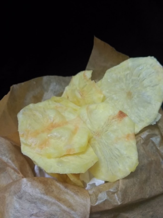 3. vamos viendo ,se ponen de un amarillo mas intenso y mas duritas, ponemos de un minuto o 30 segundos hay que tener cuidado porque se pueden quemar , cuando veamos que están un poco tostadas se quitan ya.