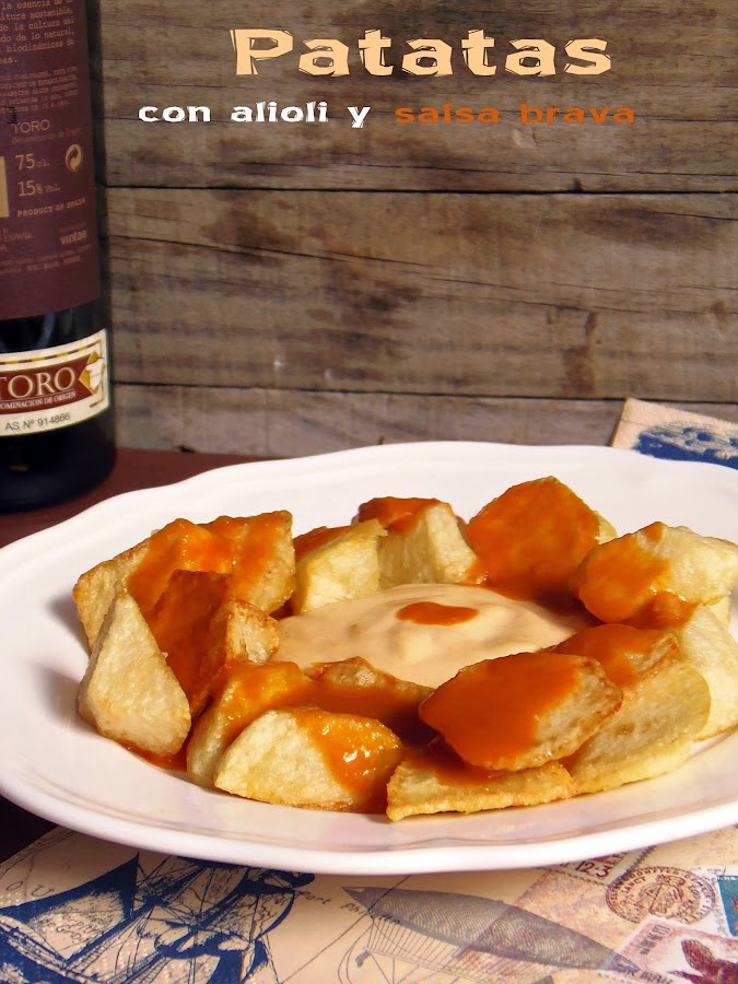 Siempre que vamos de tapas solemos comer entre otras cosas patatas, normalmente mixtas, osea con salsa brava y salsa alioli (en realidad de alioli solo tiene el nombre). A mi es como mas me gustan, la mezcla de las dos salsas me parece estupenda.