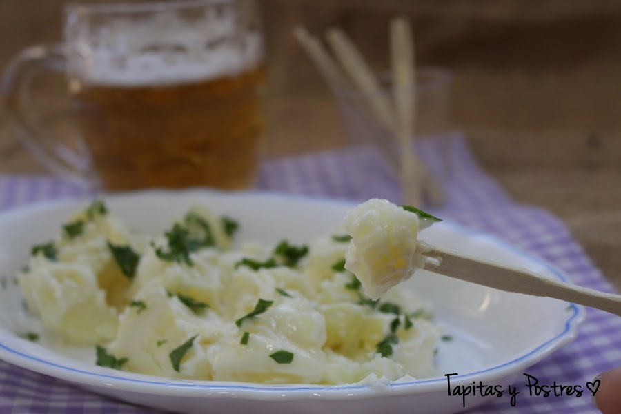 Por mi parte tocaba elegir plato. la verdad es que es complicado, la receta debe ser nueva y yo, tal y como se llama mi blog "tapitas" ya tenía varias publicadas: patatas bravas, chorizo a la sidra, ensaladilla rusa, tortilla de patata... Así que pensando me vino a la mente una tapa muy conocida y de las más fáciles que tenemos, las patatas con alioli, que con unas cañas (en mi caso un refresco de cola, ya imagináis cual) es un aperitivo delicioso.