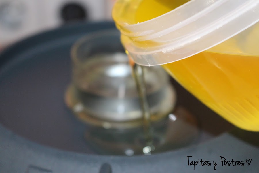 Y por el bocal vamos añadiendo el aceite poco a poco.