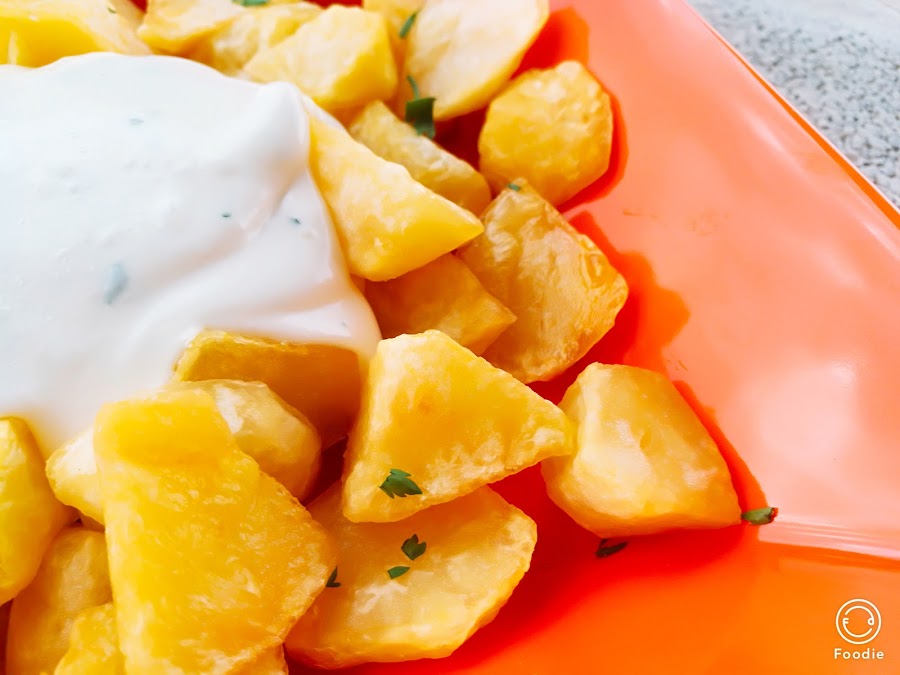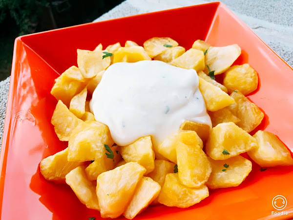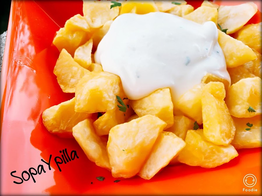 Uno de mis picoteos favoritos son las patatas con salsa allioli. Sencillísimo de hacer y nadie le dice que no cuando sirves el plato...pero mi problema es que cuando se acaban las patatas sigo con el pan...ay que vicio