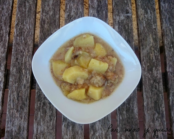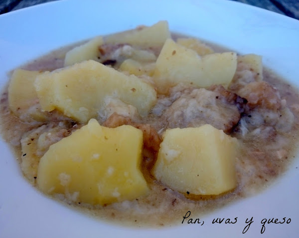 En la misma cazuela rehogamos las patatas, las pasamos a la Crock-Pot, añadimos el majado y cubrimos las patatas con agua. Salpimentamos y cocinamos 4 horas en temperatura alta.