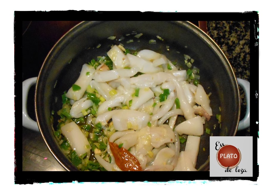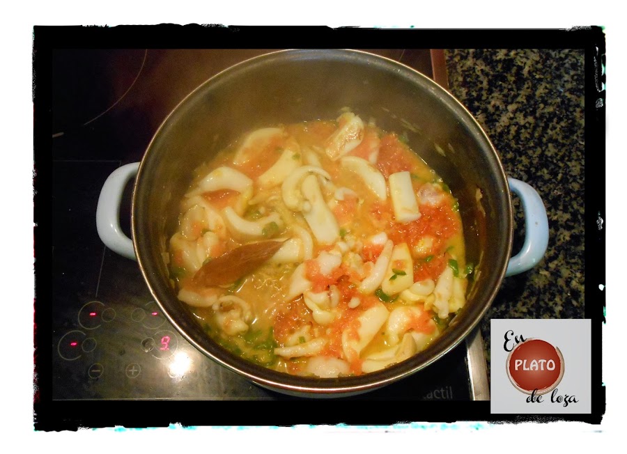 Dicen que el choco tiene dos puntos de cocción para que quede bien hecho. O lo dejas tres minutos a fuego fuerte y retiras o, si te pasas, lo haces durante media hora o más a fuego lento. Mi procedimiento resulta un poco más complicado pero no me suele fallar y me queda bien blandito en los guisos, como a mi me gusta. Yo lo añado ahora y sofrío unos cinco o diez minutos (que pierda el agua y empiece a dorarse un poco) y luego lo dejaré cociendo media hora.