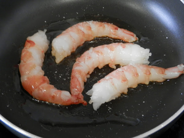 Da la vuelta a los gambones y deja que se hagan por el otro lado.