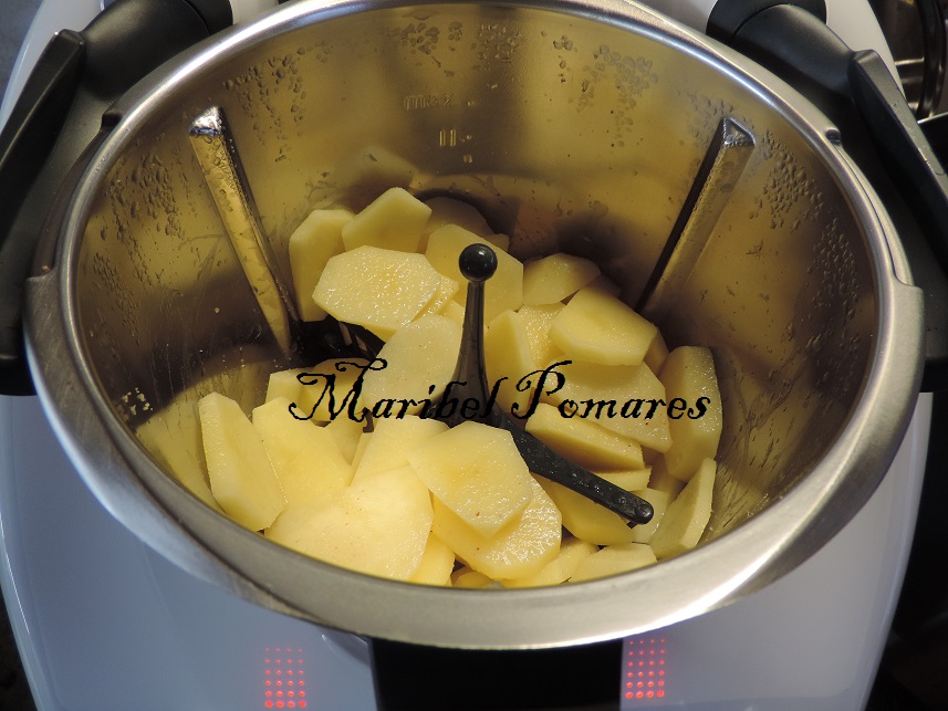 Programamos entre 15 y 20 minutos depende de las patatas, varoma, giro a la izquierda, velocidad cuchara.