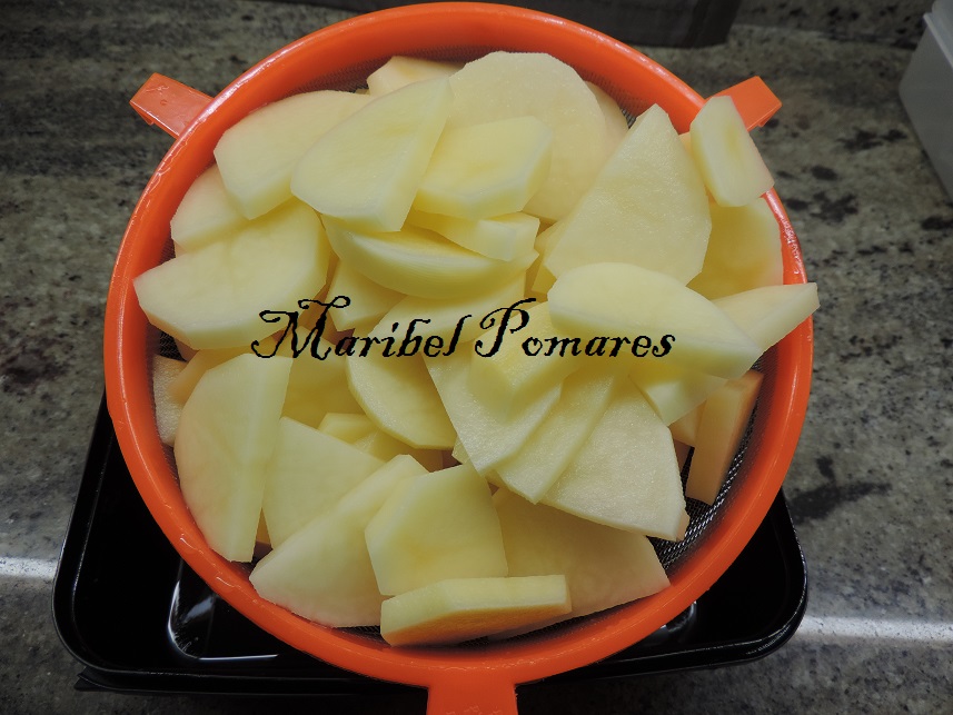 Pelamos y cortamos las patatas como para hacer tortilla.
