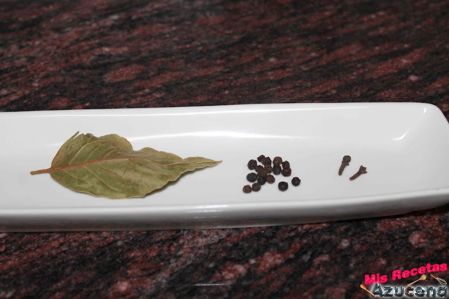 Lo primero que haremos en esta receta será lavar las patatas y ponerlas en una olla, llenamos de agua hasta cubrir y ponemos al fuego a fuego medio, añadiremos las especias de clavo, la hoja de laurel, un puñado de pimienta negra en grano como unas 10, sal y las dejaremos cocer.