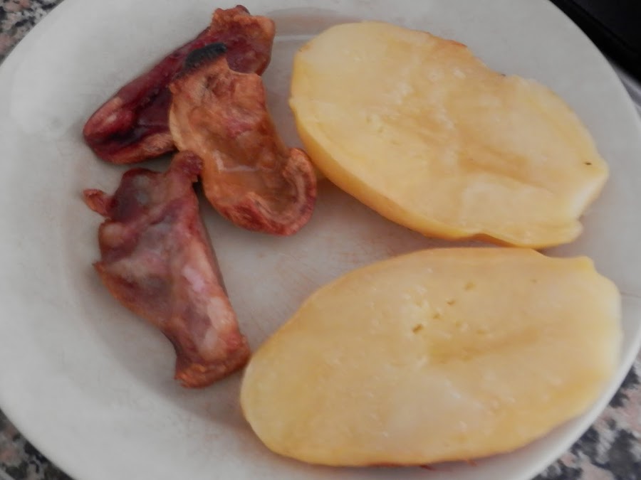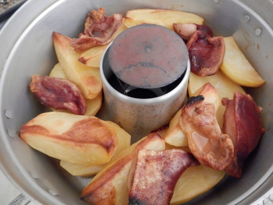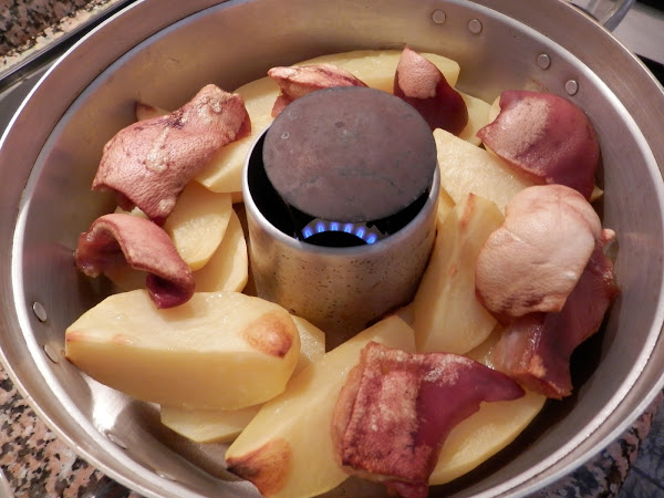Añadimos ahora las patatas y encima de éstas, ponemos el morro.