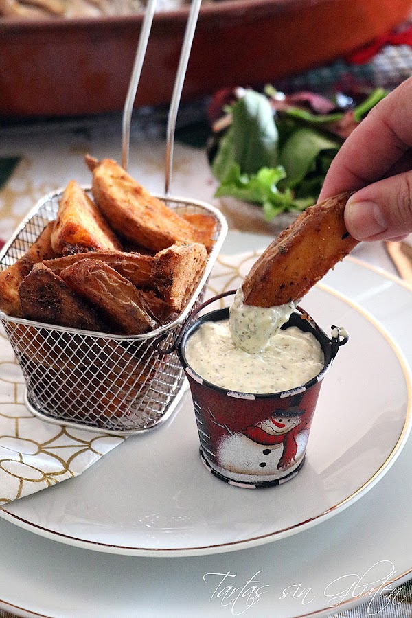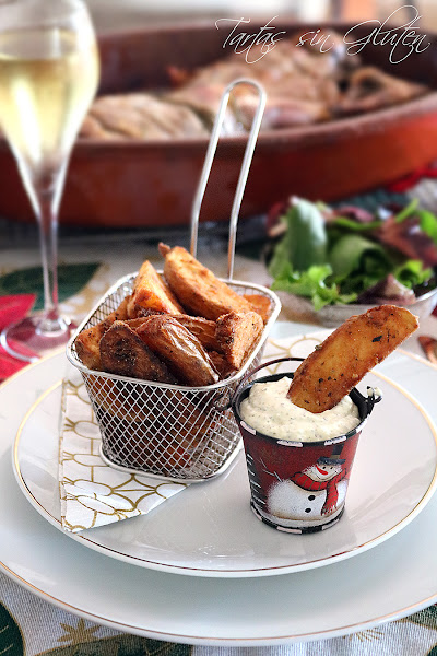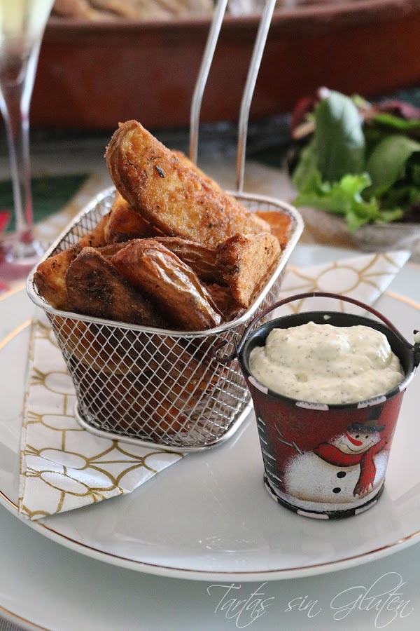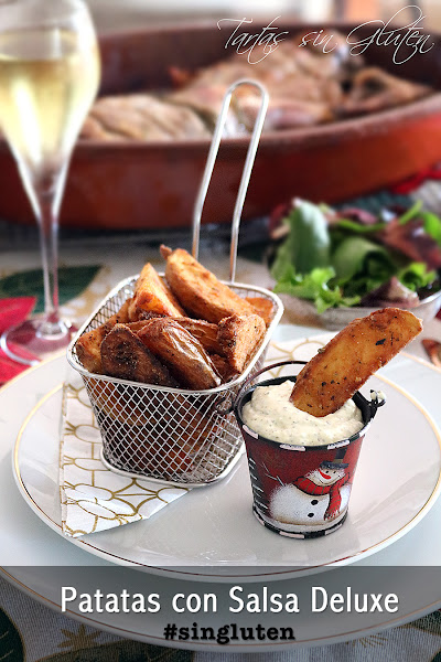 En una sarten amplia calentamos aceite de oliva y freímos las patatas hasta que estén doradas . Listas para acompañarlas con la "Salsa de Luxe".