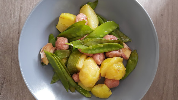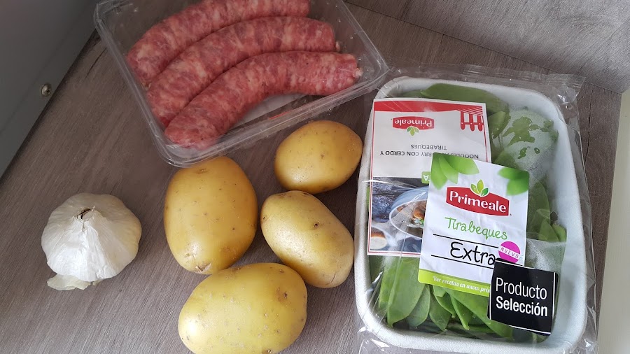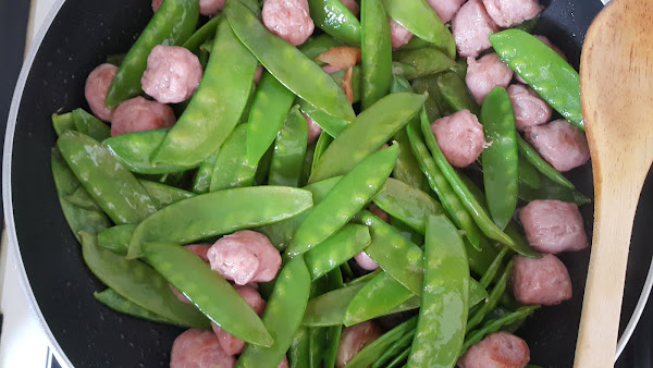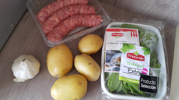 Seguidamente añadiremos los tirabeques y dejaremos unos 5 minutos a fuego medio.