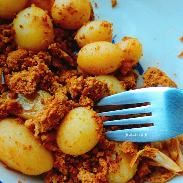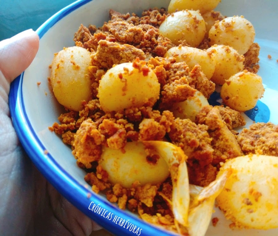 Pues resulta que tenía antojo de los nachos choriceros que ponen en Veganitessen y digo, voy a hacer algo similar con lo que tenga. Y así nacieron estas papas al estilo choricero que están tan ricas como fáciles son de hacer.