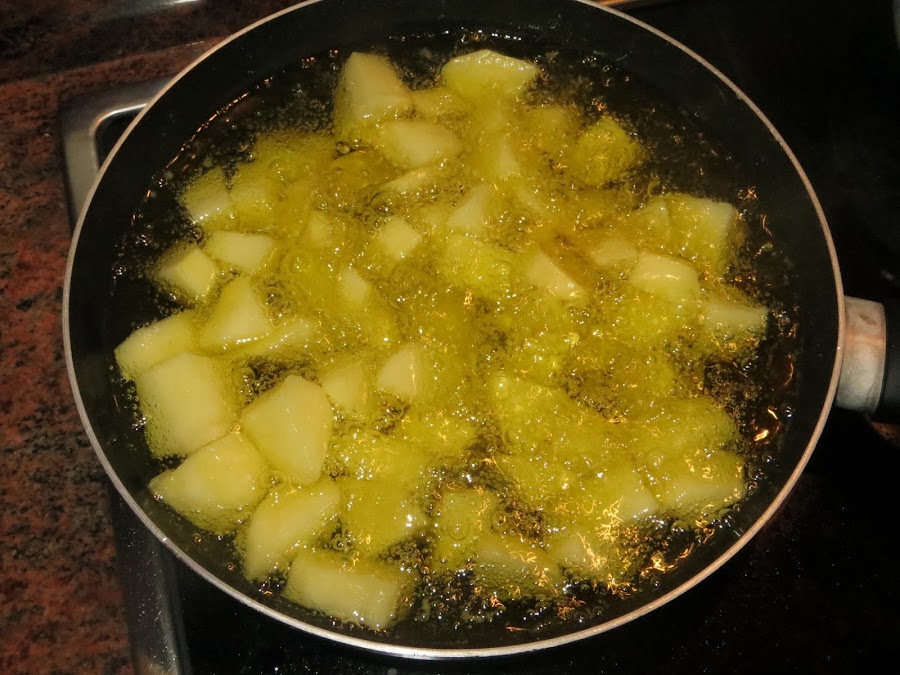 Lo primero es lavar, pelar y cortar las patatas como más nos guste, salamos, ponemos aceite en la sartén y cuando esté bien caliente las freímos a fuego medio. Cuando veamos que están listas las ponemos a fuego fuerte para que queden doraditas por fuera.