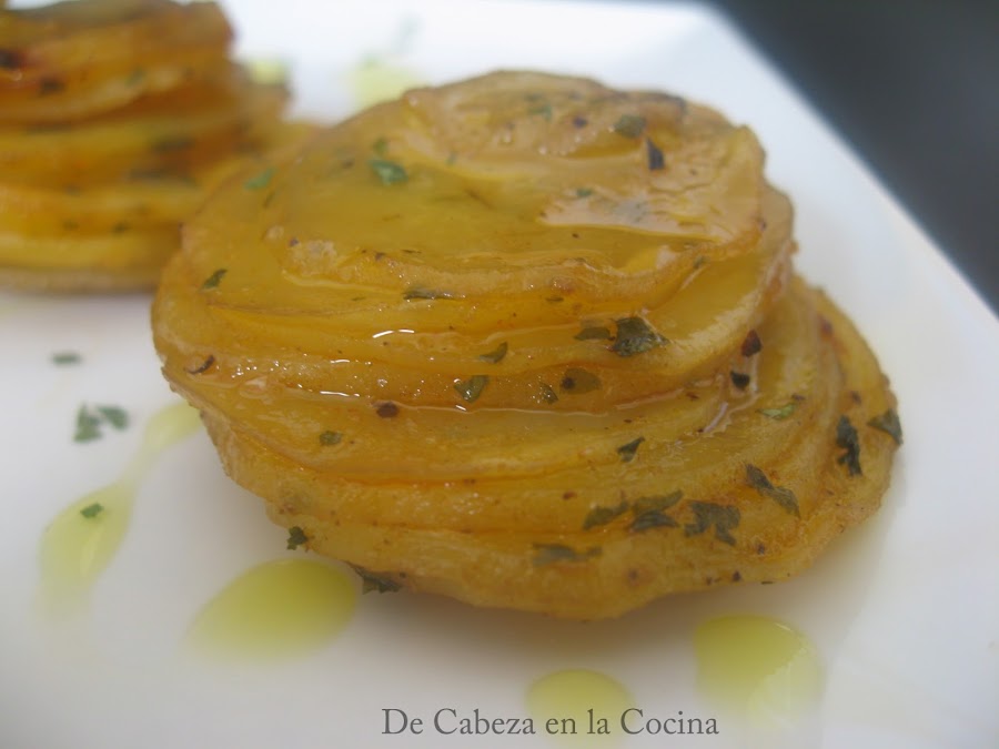 Y otra excelente guarnición la que nos presenta el blog De cabeza en la cocina, unas magníficas Patatas apiladas deliciosas!!!