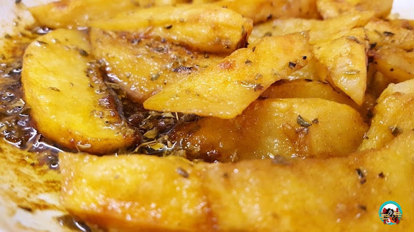 Consejo: la misma receta la puedes hacer en el horno. Esparces las patatas separas una de las otros sobre una bandeja de horno cubierta con papel de horno y las cocinas 35 o 40 minutos a 180º. También las puedes freir en la sartén con abundante aceite caliente.