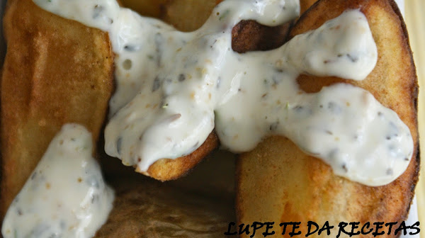 Mezclar todos los ingredientes de la salsa de yogur, en primer lugar el yogur y la mayonesa, a continuación la mostaza, el ajo y el orégano, remover todo hasta integrar y reservar fresco en la nevera.