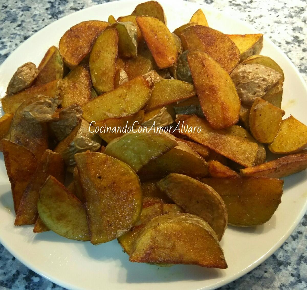 Cortamos las patatas en gajos, respetando la piel.